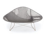 Material: Edelstahlfuss, Stahlgestell mit PE Fasern überzogen (gewebt) Plexiglas Tischeinsatz.
